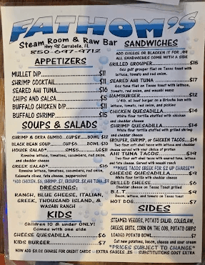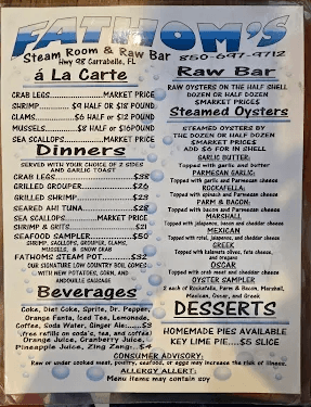 Conveniently located on the beautiful Carrabelle Harbor and on Scenic Highway 98, Fathom's Steam Room and Raw Bar has a fun, upbeat atmosphere and has quickly become Carrabelle’s hot spot. Fathom's has just about as many out-of-town visitors as locals who stop by for the excellent seafood, scenery and live music.